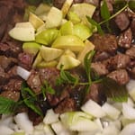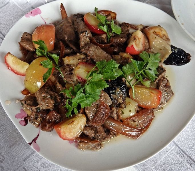 - GOŁĄBKI z jagnięciną w sosie winno – pomidorowym z rodzynkami;