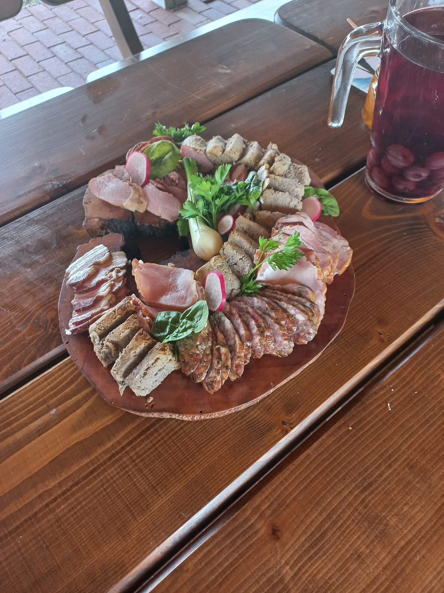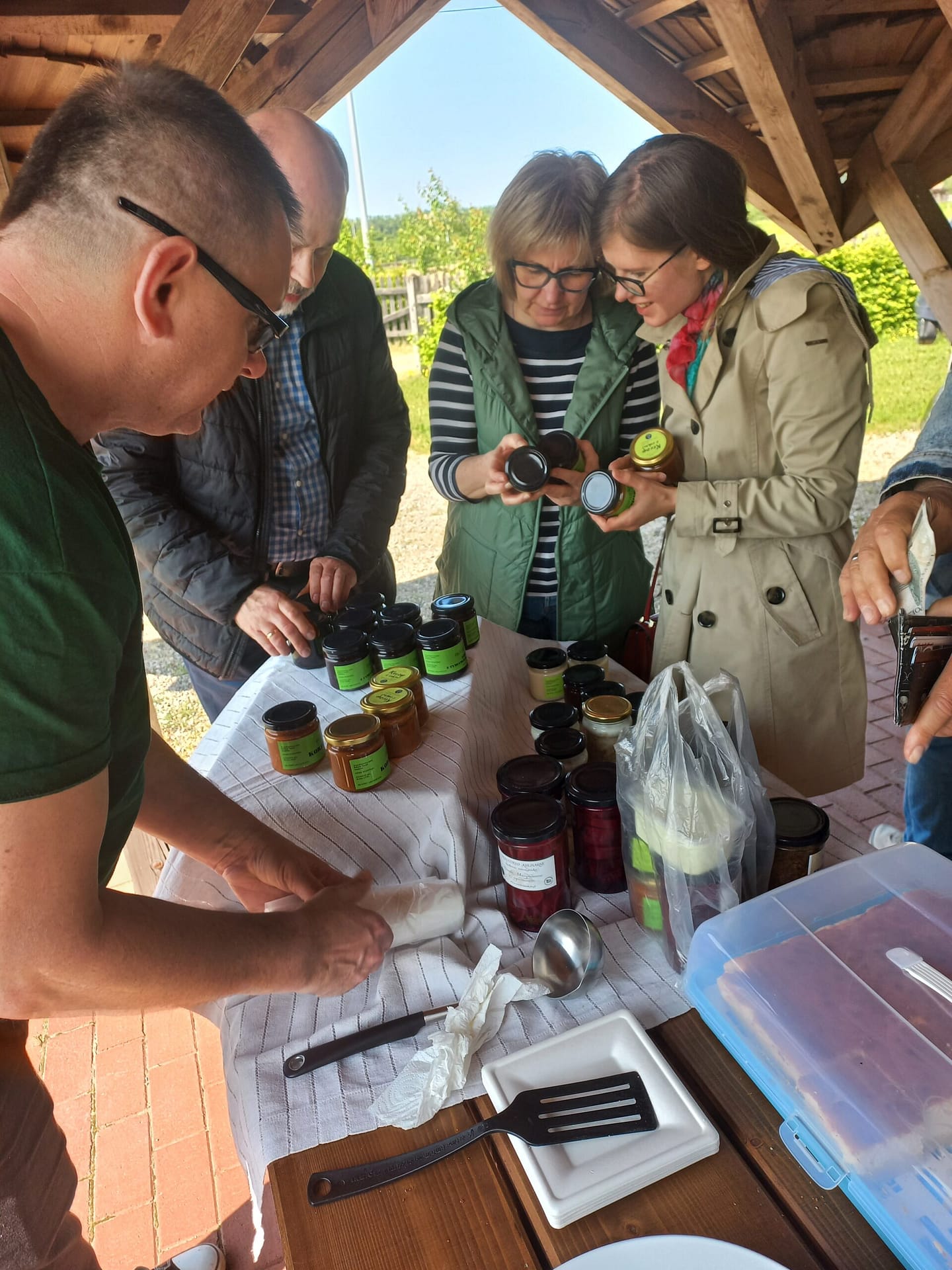 Swojskie wyroby z gęsiny, jagnięciny i wieprzowiny ras rodzimych oraz jarskich – pasty jarskie sezonowe, masło, gzik i lokalne sery; powidła strzeleckie, konfitury, bukiety sałat, pikle i marynaty, pieczywo żytnie i pszenne – wypiek własny; woda mineralna i kompot,