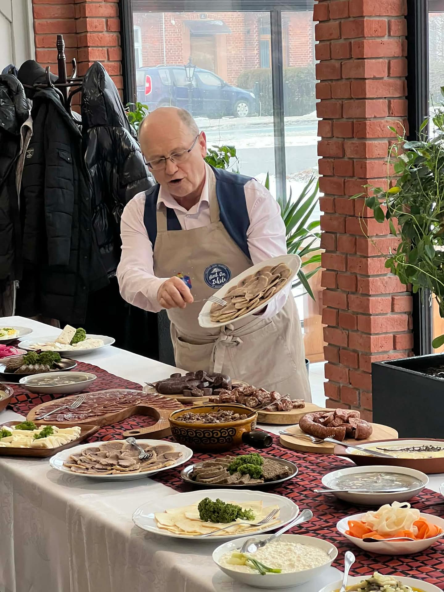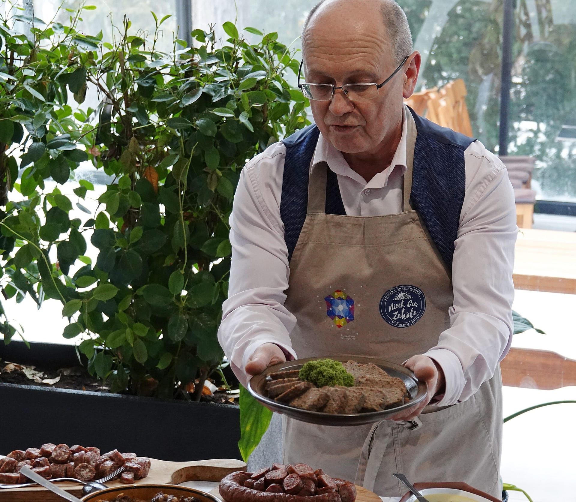 SRS z wieprzowiną rasy puławska lub złotnicka – szynka, kiełbasa swojska i polska, kaszanka, schab konfitowany; słonina/boczek wędzony szpikowany, zylc kociewski; smalec złotnicki; zupa + danie z wieprzowiny;