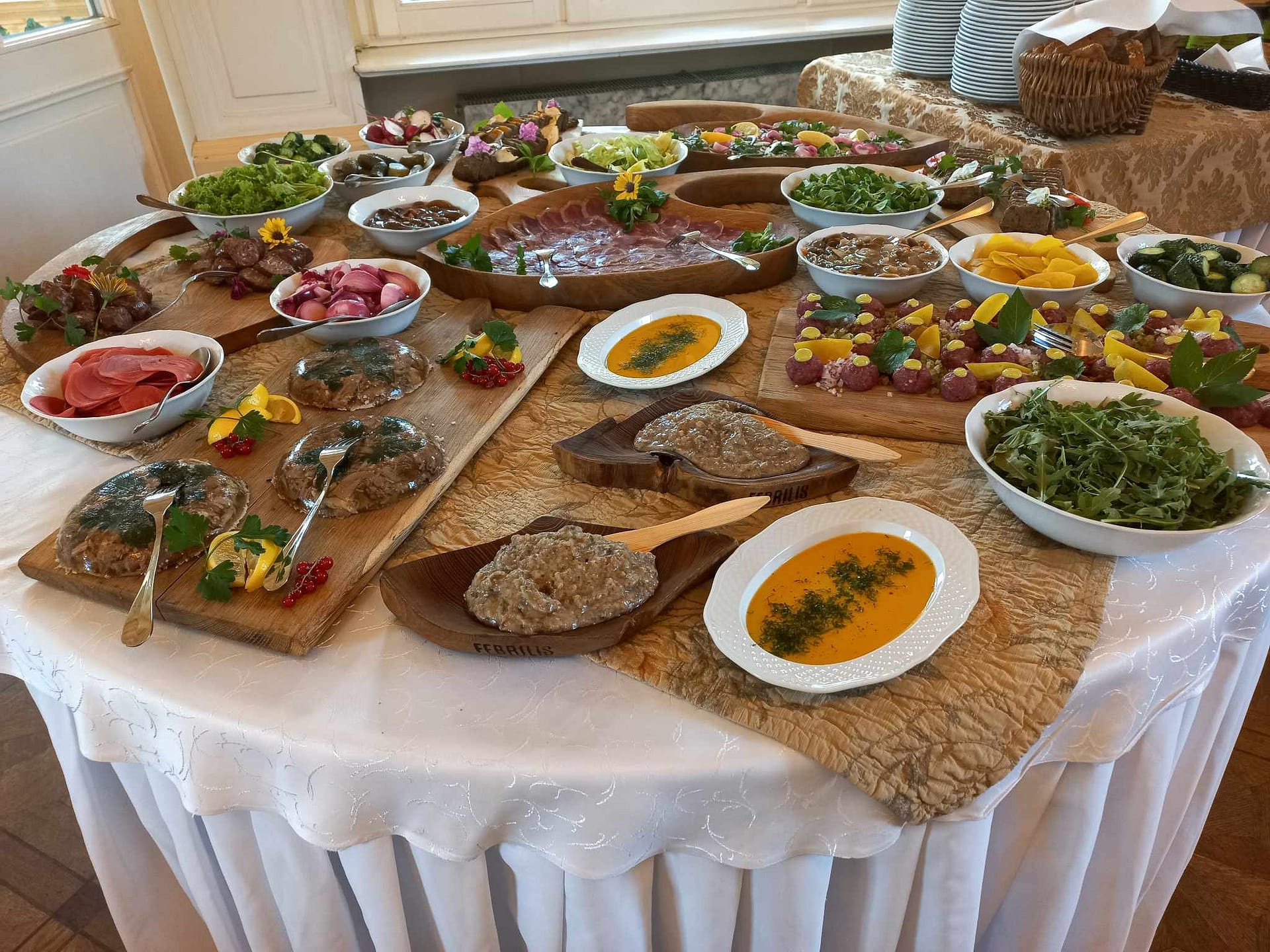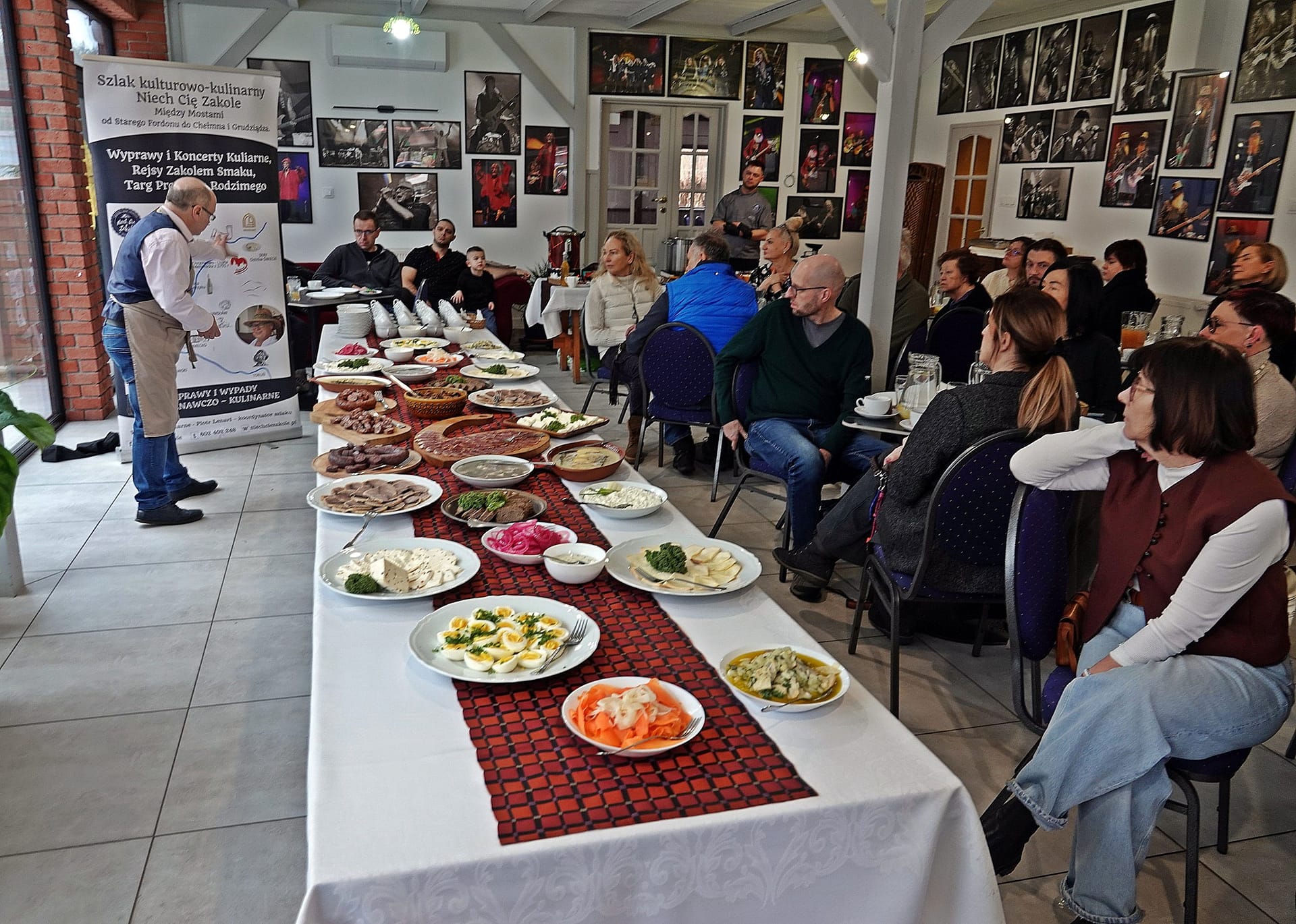 Stół Rodzimych Smaków „Rarytasy Rodzimej Rasy” – jemy do woli ile apetyt pozwoli w sezonowym otoczeniu marynat, pikli, chrupiących sałat i warzyw, naszych kapust blanszowanych w miodzie i piwie, surówek, owoców, regionalnych serów, masła, oleju, powideł z Doliny Dolnej Wisły i wybornych naturalnych sosów: woda mineralna, kompot, sok;